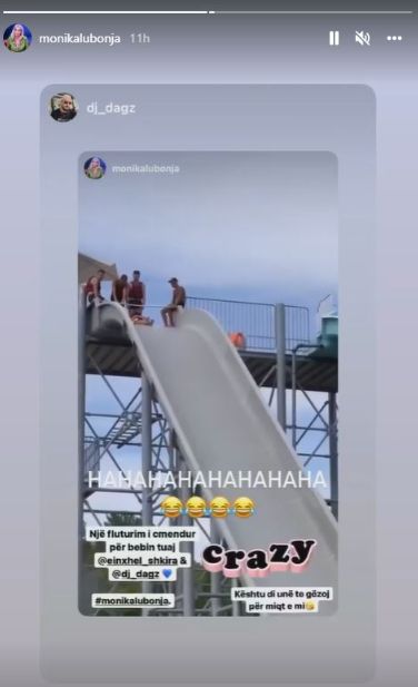Aktorja e njohur, Monika Lubonja është gëzuar shumë pas lajmit se Einxhel dhe Dj Dagz do të bëhen prindër për herë të parë. Ajo ka gjetur një mënyrë tepër origjinale për të uruar çiftin. Monika ka bërë një lëshim nga një rrëshqitëse spektakolare në pishinë dhe këtë moment e ka ndarë në Instagram me ndjekësit.