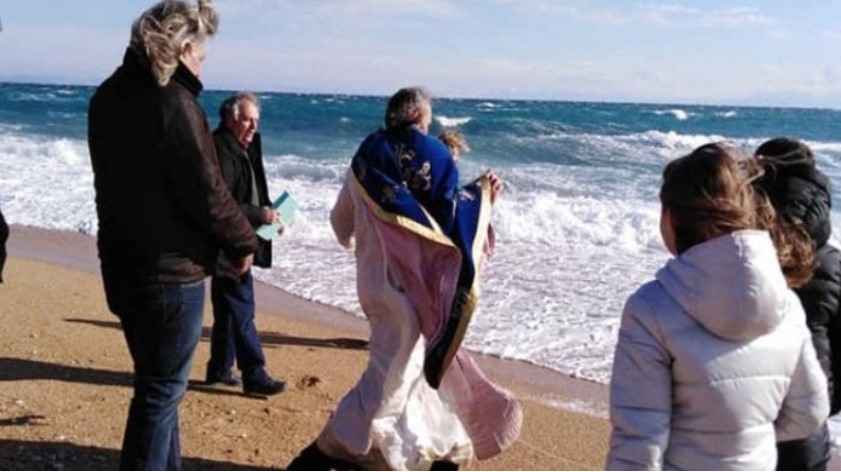 Prifti u ngrit me ndihmën e të pranishmëve dhe hodhi kryqin në përpjekjen e dytë. Kryqi u lidh me litar për shkak të detit të stuhishëm, ndërsa një grua e guximshme hyri në ujërat e ngrira dhe e kapi.
