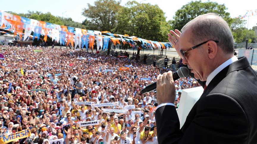 “Ne deri më sot nuk jemi përkulur askund. Ne jemi përkulur vetëm në ruku dhe sexhde para Allahut. Nësa ata kanë dollarin, ne kemi Allahun dhe ne vazhdojmë rrugën tonë me hapa të sigurtë. Deri më sot nuk kanë mundur të na gjunjëzojnë, edhe pas kësaj nuk do të munden. Mjafton që ju të qëndroni drejtë”, tha Erdoğan në fjalimin e tij.