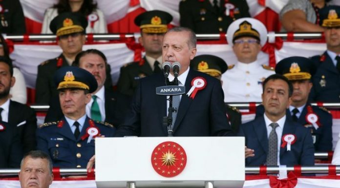 “Turqia ka nevojë për një ushtri dhe fuqi njerëzore për të mbrojtur vendin dhe kombin në mënyrën më të mirë të mundshme dhe jo një të tillë që prodhon vazhdimisht grushte shteti dhe junta që bëhen vegël e të tjerëve”, tha Erdoğan gjatë një ceremonie diplomimi në shkollat e akademisë ushtarake me rastin 96-vjetorit të Ditës së Fitores dhe Forcave të Armatosura Turke, që shënon triumfin e ushtarëve turq ndaj forcave greke gjatë luftës për pavarësi në vitin 1922.