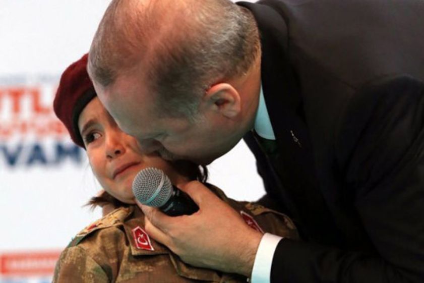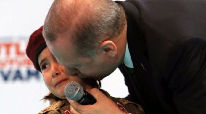 Presidenti turk Rexhep Taip Erdogan u bë cak i kritikave të ashpra pasi gjatë një fjalimi para simpatizuesve partiak, një vajze me uniformë duke qarë i ka thënë se do ishte nder të vdes në luftë.