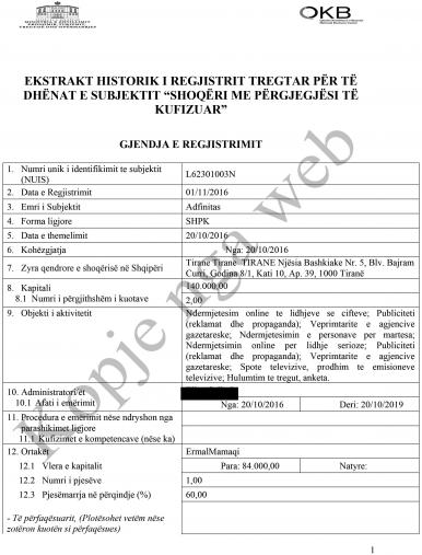 Ermali ka ndryshuar statusin e biznesit nga “aktiv” në “të pezulluar” në QKR duke treguar kështu që ishte i pasuksesshëm. /albeu