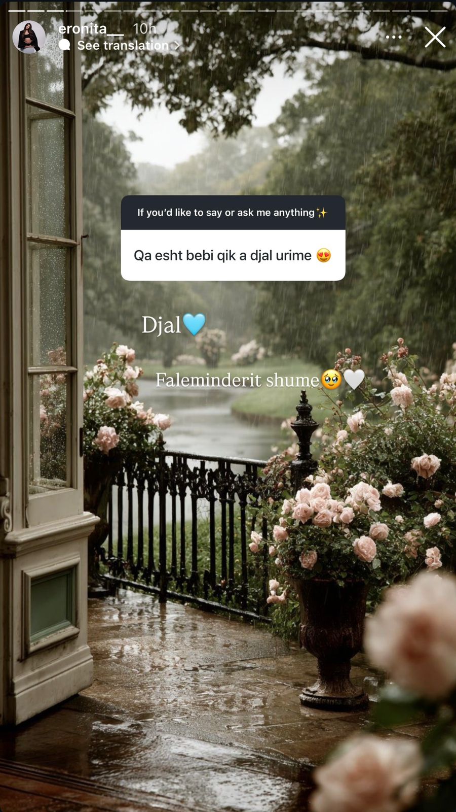Vetëm pak ditë pas konfirmimit të ëmbël të shtatzënisë, Eronita, partnerja e këngëtarit të njohur Blero, ka vendosur të ndajë detaje të reja dhe shumë të pritura me ndjekësit e saj. Përmes një sesioni pyetje-përgjigje në llogarinë e saj në Instagram, ajo ka shuar kuriozitetin e fansave dhe ka sqaruar një herë e mirë disa nga thashethemet e portaleve rozë.