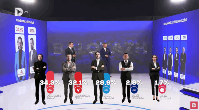 Exit Poll-i i realizuar nga UBO Consulting dhe prezantuar ekskluzivisht në emisionin “Debat Plus” në TV Dukagjini tregon se gara për kryetar të Prishtinës pritet të shkojë në balotazh, mes kandidatit të LDK-së, Përparim Rama, dhe kandidatit të Lëvizjes Vetëvendosje (LVV), Hajrullah Çeku.
