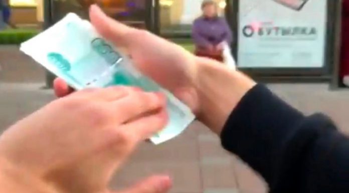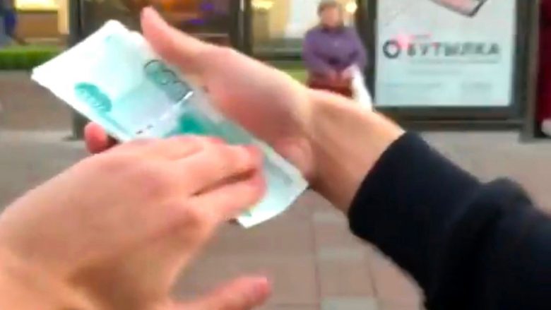 Një fëmijë rus ka shkaktuar zemërim pasi u filmua duke hedhur para nga një dritare e një veture, pas së cilës gjë ka pritur reagimin e kalimtarëve.