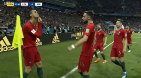 Pas golit të parë të portugezit me penallti, ajo që bëri habi te të gjithë ishte festimi i portugezit, që filloi të prekte pjesën e mjekrës në fytyrë.