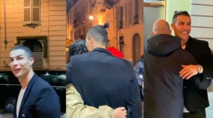 Siç shihet nga videoja e publikuar në rrjetet sociale nga Georgina, lojtari portugez u befasua jashtë një restoranti të njohur në qendër të Torinos me pritjen e befasishme të familjes dhe miqve të ngushtë.