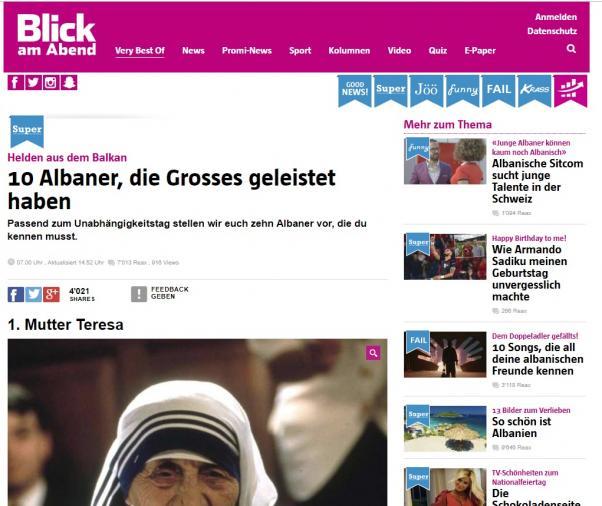 Gazeta zvicerjane “Blick” është fiksuar sot në kuptimin e plotë të fjalës me shqiptarët. Pasi uroi shqip Ditën e Pavarësisë, pak minuta më parë gazeta ka publikuar një shkrim duke radhitur 10 shqiptarët më të famshëm.