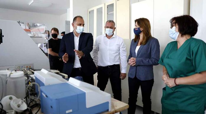 “Në këtë laborator, ku u kryen testet e para të koronavirusit dhe ndaj të cilit, ishte presioni më i madh nga pacientët nga i gjithë vendi, ata filluan të bëjnë 20 testime në ditë, ndërsa tani po bëhen 1.200 testime”, tha ministri, i cili i përgëzoi punonjësit për sakrificën e tyre gjatë kohës së pandemisë.