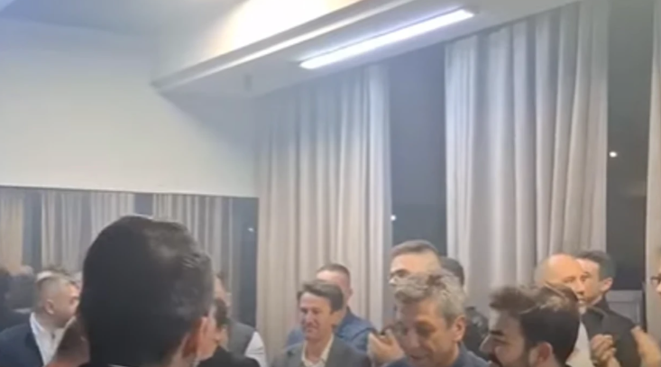 Në një video të shpërndarë në rrjetet sociale duket atmosfera festive në shtabin e VLEN-it në Çair, teksa disa bashkëpartiakë e urojnë Mexhitin për fitore.