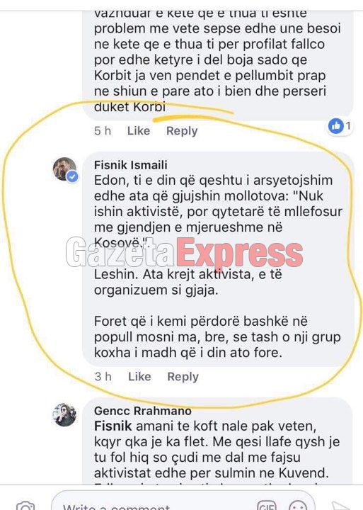 Ismaili duke iu përgjigjur një komentuesi, përmes rrjetit social Facebook ka shkruar se atë kohë kishin arsyetuar mjetet e dhunshme nëpër protesta, duke thënë se ata persona nuk ishin aktivistë, por qytetarë të mllefosur.