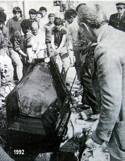 Bashkëlidhur katër foto, dy prej të cilave janë shkrepur më 13.4.1985 kur bëheshin nderimet dhe dy të tjera më 3.5.1992, ditën kur arkivoli i Hoxhës u hoq nga varrezat e dëshmorëve.