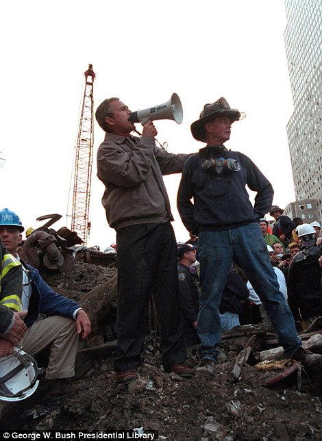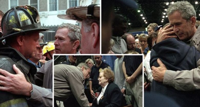 Teksa mijëra vetë janë mbledhur sot në ceremoninë përkujtimore, më poshtë po ju sjellim një koleksion fotosh të rralla të Presidentit të atëhershëm, George W. Bush, gjatë kësaj ngjarjeje tragjike.
