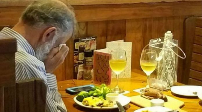 Një fotografi prekëse është bërë virale pasi një burrë po qante në tavolinë ndërsa po hante i vetëm në ditën e Shën Valentinit.