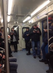 Fotografia, e bërë në një metro të Moskës në Rusi, shfaq pothuajse gjithë pasagjerët duke lexuar libra. Gjë kjo që nuk ndodh shpesh në ditët e sotme.