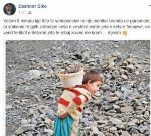 parlament ta shikonin të gjithë zotërinjtë sesa e vështirë është jeta e këtyre fëmijëve, në vend të librit e detyron jeta të mbajë kovën me krom..mjerim”, shkruan i prekur këngëtari Diko. /albeu.com/