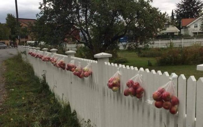 Në Norvegji prodhimi i frutave është i madh, ndaj çdo banor nisi të vendoste nga një qese me fruta në anë të derës së shtëpisë së tij, me idenë që çdo person në nevojë të mund të marrë diçka.