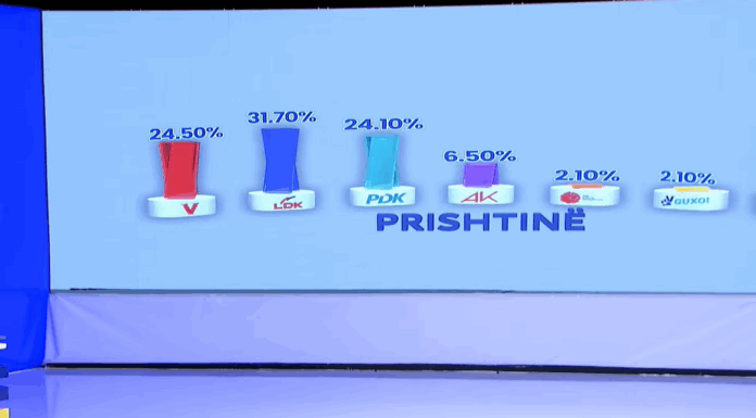 Exit Poll-i i realizuar nga UBO Consulting dhe prezantuar ekskluzivisht në emisionin Debat Plus në TV Dukagjini, ka publikuar rezultatet për Asamblenë Komunale të Prishtinës, duke treguar një garë të ngushtë mes tri partive më të mëdha, por me një epërsi të lehtë të Lidhjes Demokratike të Kosovës (LDK).