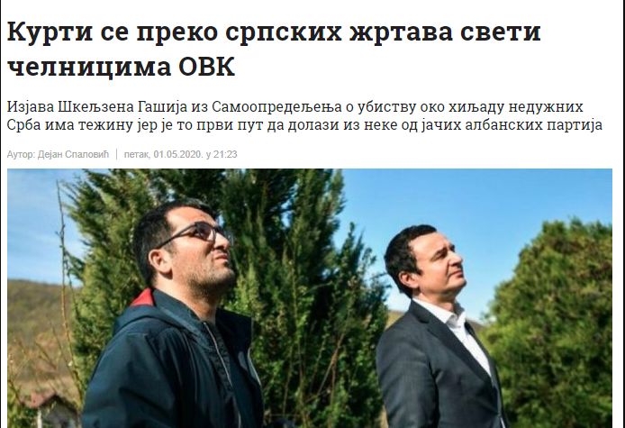 Gazeta serbe “Politika” në një shkrim të publikuar të martën ka shkruar rreth deklarimeve të bëra para pak ditësh nga Shkëlzen Gashi, i cili në cilësinë e këshilltarit të kryeministrit në detyrë dhe lideri të VV’së, Albin Kurtit, kishte thënë se individë të cilët kanë qenë pjsë e Ushtrisë Çlirimtare të Kosovës kanë vrarë civilë serbë të pafajshëm.