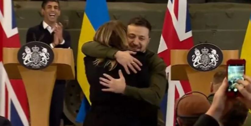 Mirëpo përballë këtij hezitimi, Zelensky e mirëpriti si ftesë dhe shkoi i pari për t’i dhënë një përqafim të ngrohtë.