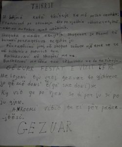 Letra është publikuar nga regjisorja Elma Doresi e cila shkruan: “Miku që na do të mirën ne…Po emër s’ka…adresë s’ka e s’ka…Atëherë nuk qenka mik…Ps : Kjo letër është gjetur në autobus sot”.