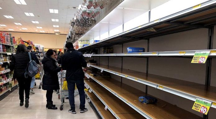 E nga Italia po shfaqen fotografi të rafteve të zbrazëta nëpër markete, ku konsumatorët e dëshpëruar me këtë lajm mbanin maska mbrojtëse.