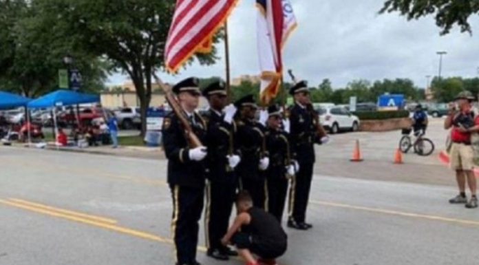 Një oficer iu afrua Brownit dhe e kërkoi që të hynte në procesion dhe t’i lidhte këpucët oficerit Jerrick Wilson, i cili po marshonte me një flamur amerikan, përcjellë Indeksonline.