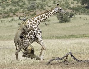 Pavarësisht luftës së guximshme të gjirafës, në fund dy luanët dolën triumfues ndaj gjirafës.