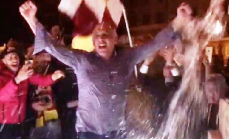 Kualifikimi historik që arriti Roma përballë Barcelonës duke fituar me rezultatin e 3-0, e gëzoi aq shumë presidentin verdhekuq, sa ai u hodh në një shatërvan duke festuar.