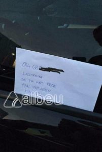 Ai i ka lënë një letër me numrin e telfonit duke i shkruar: “Ta kam rrokur pak veturën mbrapa, më telefono!”.