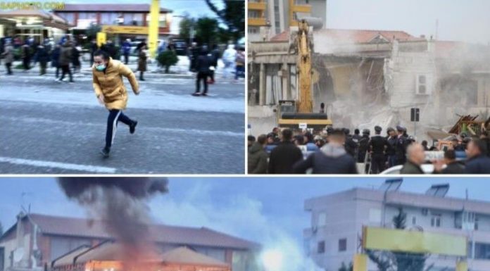 Për të shpërndarë protestuesit policia ka hedhur gaz lotsjellës.