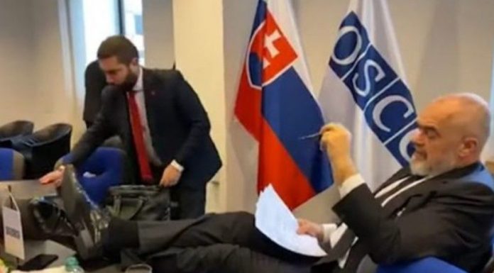 Kryeministri Edi Rama pak përpara fjalës së marrjes së kryesisë së OSBE për vitin 2020 nga Bratislava ka hedhur një video në faqen e tij zyrtare në Facebook me këmbët mbi tavolinë duke përgatitur detajet e fundit.