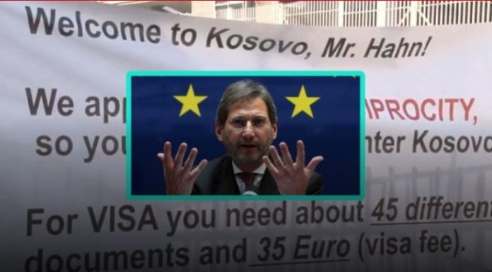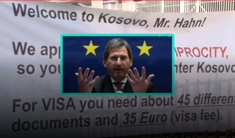 Sidoqoftë, në mesazhin e vendosur në hyrje të institucioneve ku Hahn do të zhvillojë takime me krerët e shtetit, i tregohen edhe harxhimet për ‘vizë kosovare’. 75 euro do t’i kushtonte Hahn’it viza e Kosovës, të cilën shumë e paguajnë kosovarët për çdo vizë.Ndryshe, Hahn është thënë se vije në Kosovë për të kërkuar heqjen e taksës ndaj produkteve serbe, mirëpo mediat kanë raportuar se me të do të diskutohet edhe mundësia e minutës së fundit për të hyrë në agjendë të mbledhjes së Këshillit të Ministrave që mbahet më 6 dhe 7 dhjetor. Komisioneri evropian ishte më i zëshmi në premtimin për viza, mirëpo tani është pikërisht ai që po e thekson ‘skeptizmin e BE’së’.