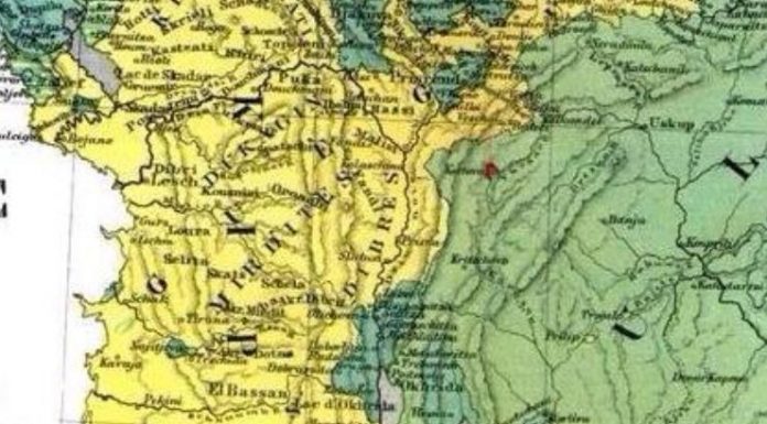 Kjo hartë e para dy shekujve tregon se sa e madhe ka qenë Shqipëria dhe sa është zvogëluar tani trungu jonë kombëtar.