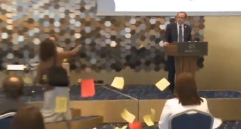 Kryeministri i vendit, Avudllah Hoti ka folur në konferencë për media rreth dialogut me Serbinë, por më pas ndodhi një incident kur disa aktiviste i hodhën letra në fytyrë.