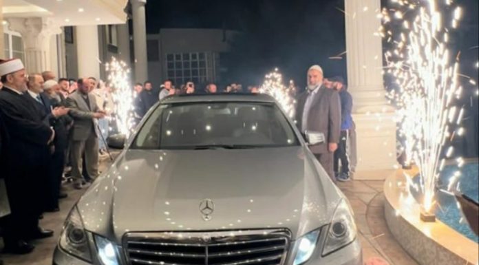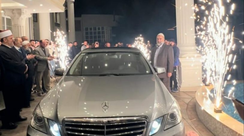 Burim Piraj, presidentit i kompanisë Hallall në Kosovë, me qendër në Dragash, i dorëzoi çelësat e makinës luksoze atij që ndryshe njihet si kontribuues për dhjetra xhami në Kosovë por më së shumti në Shqipëri.