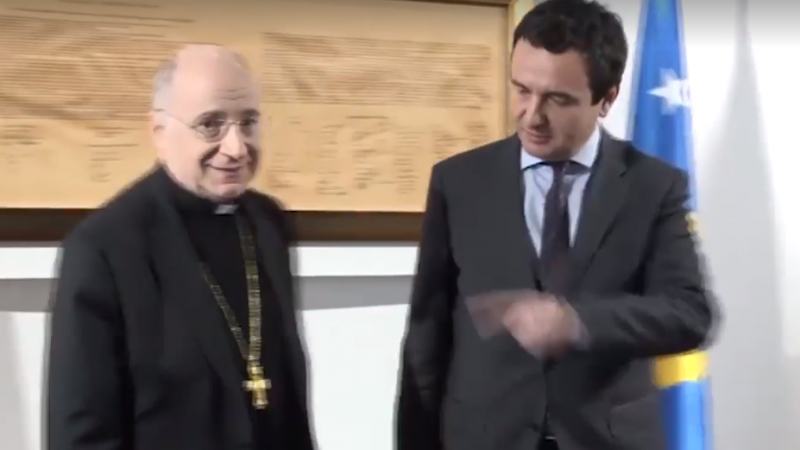 Derisa Kurti dhe diplomati i Vatikanit kishin shfrytëzuar pak minuta për të bërë disa foto zyrtare nga mediet, ai është hutuar për disa sekonda.