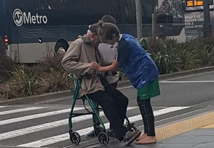 Dy adoleshentë po përshëndetet si heronj pasi ndihmuan një të moshuar që të kalonte rrugën.13-vjeçarët, B.O and D.S e ndihmuan të moshuarin, i cili mezi po ecte me karrocën e tij, dhe u siguruan që asnjë makinë të mos kalonte derisa ai të ishte i sigurt.