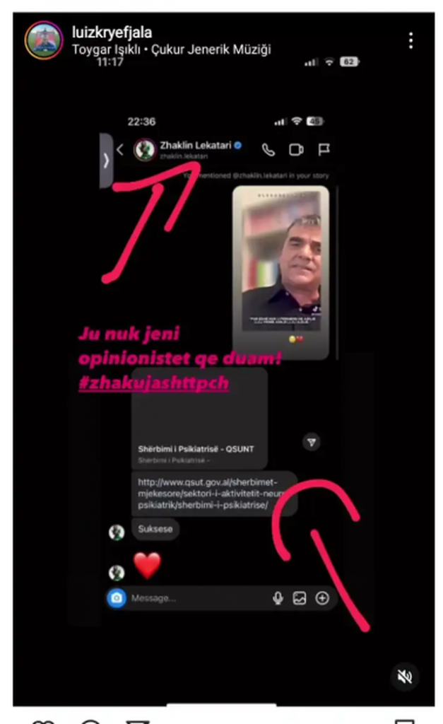 Ajo dërgoi linkun e shërbimit të psikiatrisë, duke ironizuar kështu komentet e babait të Kiarës, një veprim që po komentohet shumë në rrjet.