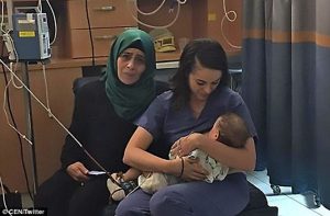 Një motër medicinale hebreje ka fituar zemrat e miliona njerëzve në mbarë botën me një fotografi të postuar në internet, ku ajo shihet duke i dhënë gji një djaloshi palestinez, nëna e të cili ishte lënduar rëndë në një aksident trafiku.