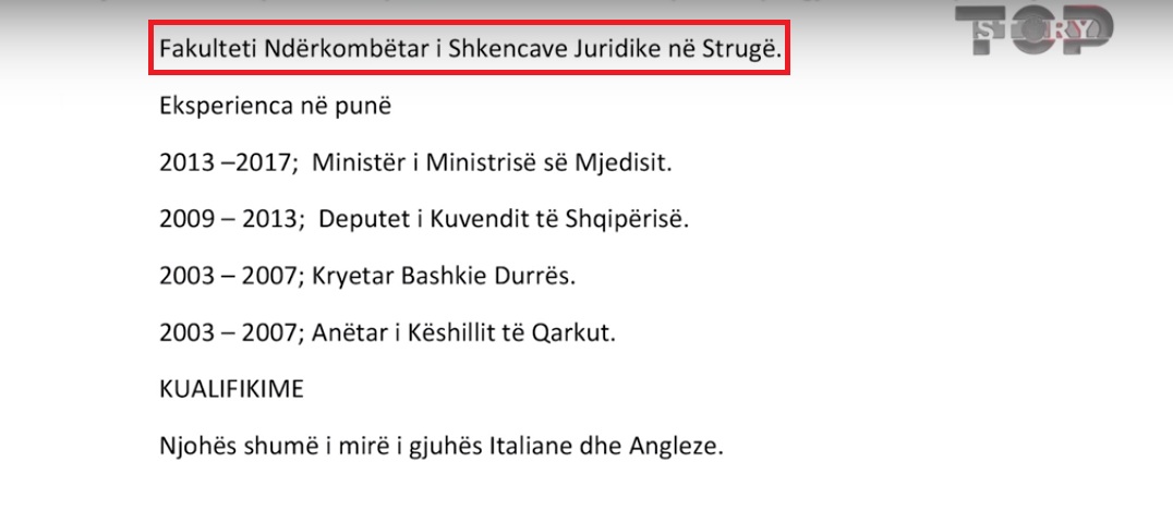 Emisioni “Top Story” ka zbuluar se si Lefter Koka në CV e tij që kishte dërguar në KQZ, në shkrimin e tij mbi arsimimin shkruante se kishte studiuar në Fakultetin Ndërkombëtar të Shkencave Juridike në Strugë, duke gabuar emrin e univesitetit që duhet të ishte Univesitetit Ndërkombëtar i Strugës, Fakulteti i Shkencave Juridike.