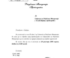 “I nderuar zotëri Xhaferi, në pajtim me nenin 45, paragrafi 1 nga Kushtetuta e Republikës së Maqedonisë, do të doja të ju drejtohem deputetëve të parlamentit të Maqedonisë dhe t’i informoj për disa çështje të rëndësishme në ingerencë time. Ju lutem që të më mundësoni atë më 28 dhjetor të vitti 2018, e premte me fillim në ora 12”, shkruan në letrën e presidentit Ivanov dërguar deri tek Xhaferi.