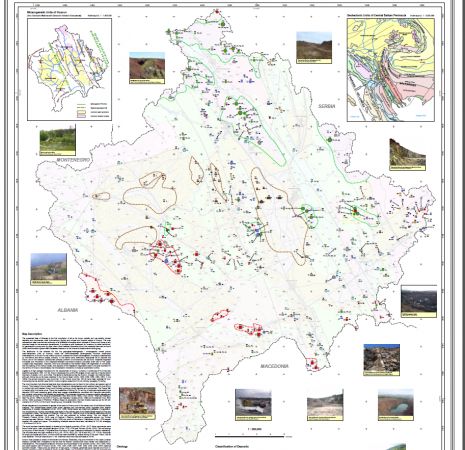 Në Strategjinë minerare të dhënat bazohen në hulumtime të pakta që janë realizuar në territorin e gjerë të Artanës, Junikut, në lumin Tërnavë, Dragash, në afërsi të Prekovcit (Kriva Reka), Gllamë dhe në lindje të Koretishit.