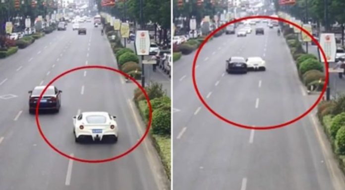 Ky është momenti kur një djalë i ri në Kinë përplas makinën sportive Ferrari që kushton afro 600 mijë paund , të cilën pak minuta më herët ia kishte marrë një miku për të bërë një xhiro.