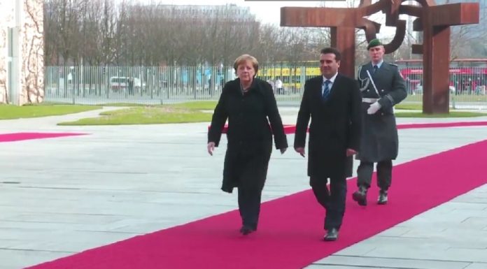 Kryeministri Zoran Zaev është pritur me ceremoni shtetërore gjatë vizitës zyrtare në Gjermani. Ai vlerëson se kjo vizitë është një shembull i mirë për ndërtimin e raporteve të mira në regjion, ndërsa është pritur nga kancelarja Angela Merkel, transmeton Medial.mk.