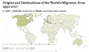 Në vitin 2017 ishin 1,150,000 njerëz të lindur në Shqipëri, që po jetonin në shtete të tjera.