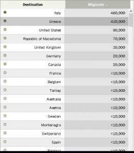 Në vend të dytë është Greqia, e cila dikur ka qenë destinacioni kryesor i emigrantëve, por që vitet e fundit shumë janë kthyer pas krizës së borxheve që pushtoi shtetin grek.