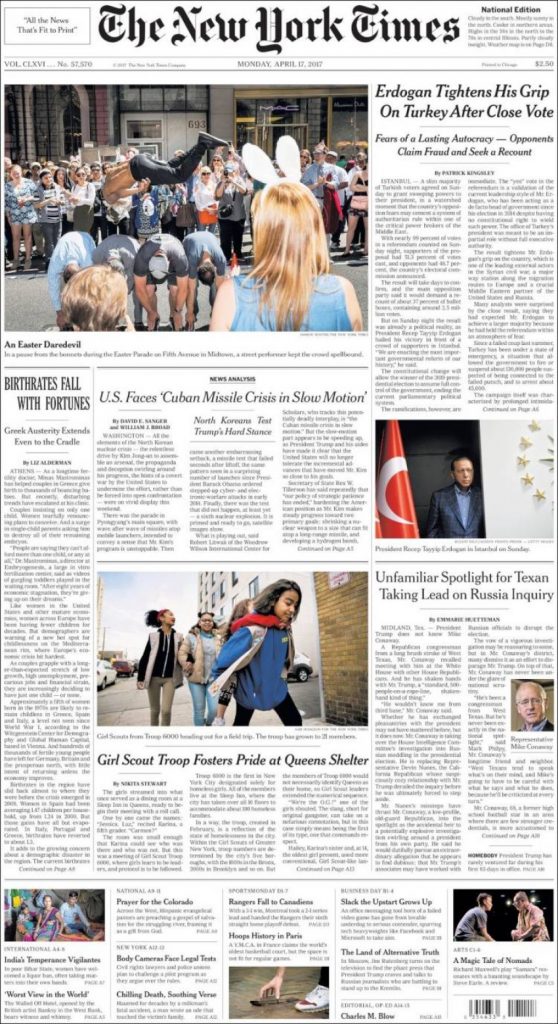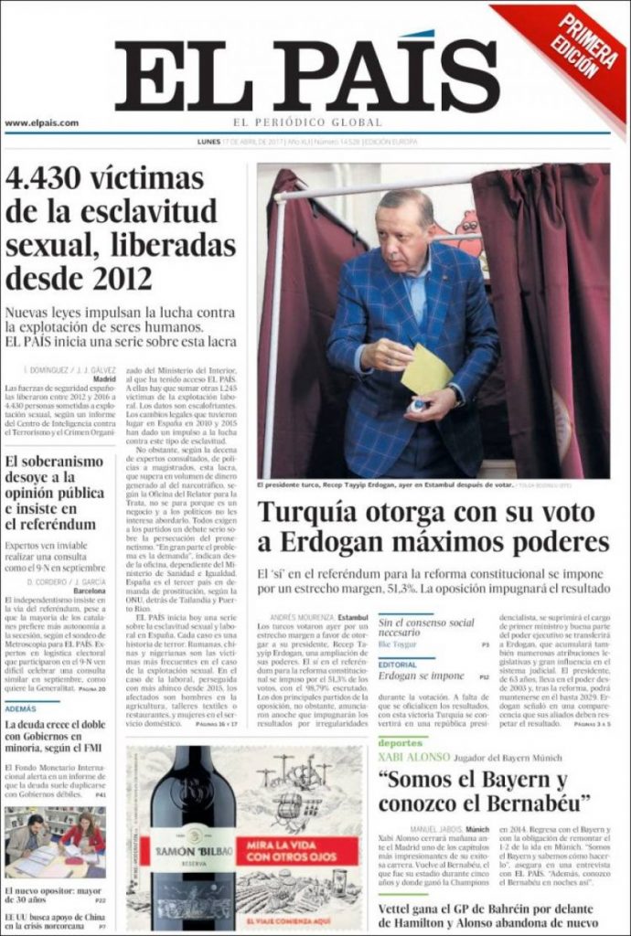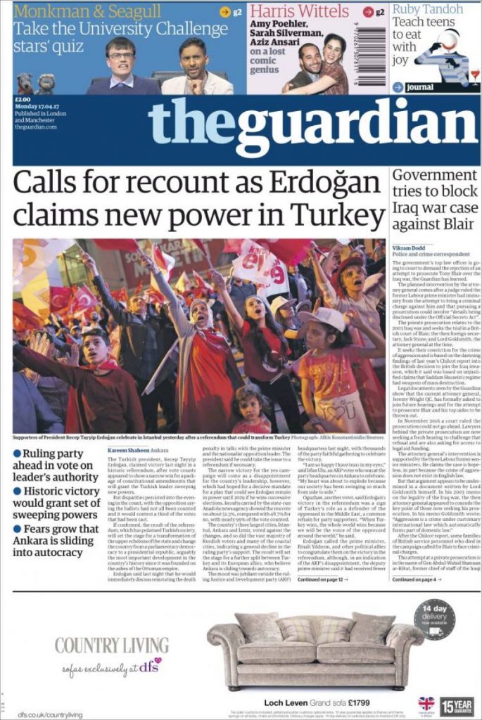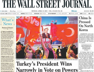 Kështu, disa gazeta europiane dhe amerikane që edhe sot botohen në ballinat e tyre pos që kanë njoftuar për fitoren e Erdoganit kanë raportuar edhe për “vdekjen” e sistemit republikan në këtë shtet. Kjo vlen edhe për raportimet e të gjitha mediave në edicionet e tyre online.