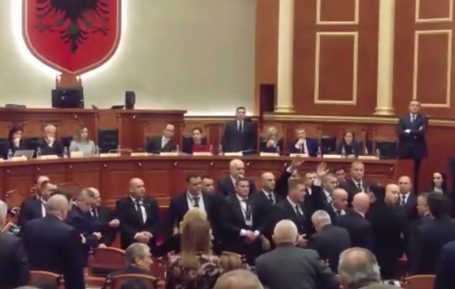 Ndërkohë bëhet e ditur se kryetari Lulzim Basha ka braktisur sallën e Kuvendit dhe është nisur drejt selisë së PD-së së bashku me ish-kryeministrin Sali Berisha. /albeu