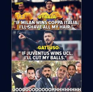 Por i menjhershëm ka qenë reagimi i tranjerit të Milanit Gennaro Gattuso, ku tha se “Nëse Juventusi fiton UEFA Champions League unë do të pres topet e mija”.